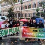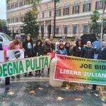Mobilitazione romana di una folta delegazione sarda giunta a Roma per manifestare davanti all’ambasciata americana per chiedere la liberazione di Julian Assange.