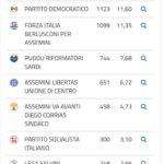 Nella sfida delle liste, ottiene il miglior risultato la civica di Puddu con oltre il 21% dei voti, poi a seguire Fratelli d’Italia, che non fa il risultato sperato, con il 16,50%, terzo partito il Movimento Cinque Stelle con un misero 11,83%.
