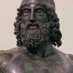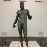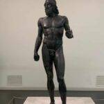 I bronzi di Riace sono stati trovati nel 1972, merito di un sub dilettante, nel 1974 in Sardegna un agricoltore di Cabras, con un trattore, impatta con un gigante a Monti Prama, due scoperte in Calabria e in Sardegna che rivoluzionano la Storia dell’Arte dell’intero Occidente, entrambe le scoperte hanno specificità stilistiche e linguistiche locali: i giganti sardi risalenti all’ottavo secolo a.C.sono il primo esempio di scultura monumentale a tutto tondo dell’intero Occidente, i bronzi di Riace risalgono al V secolo a.C. e paiono un anomalia in tutto il tracciato della storia dell’arte del periodo, unici originali e non riprodotti, paiono arte contemporanea nella loro specificità, quasi come fossero una commissione privata.