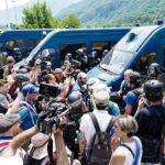 La manifestazione è stata bloccata dalle forze dell’ordine francesi all’altezza di un ponte che avrebbe permesso di oltrepassare il fiume che costeggia il percorso. Si sono scatenati degli scontri e la polizia sta reagendo violentemente.