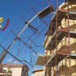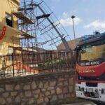 Pali e insegne divelte, caduta parziale di cornicioni e messa in sicurezza di strutture pericolanti, come il cedimento dell’impalcatura nel cantiere edilizio presso l’istituto nautico in via Terralugiana a La Maddalena, a cui si riferiscono le immagini.