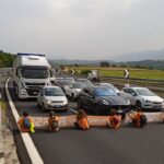 Questa mattina alle 8:50 nove persone aderenti alla campagna NON PAGHIAMO IL FOSSILE, promossa da Ultima Generazione, hanno bloccato il traffico sull’A1, da Firenze verso Roma all’altezza di Fiano Romano, km 528+600. I cittadini della campagna di disobbedienza civile per tutta la durata dell’azione hanno dialogato con gli automobilisti presenti, discutendo della gravità della situazione climatica, economica e sociale corrente, e dell’inaccettabilità dell’inazione della politica per contenerne e prevenirne i danni. Dopo circa 20 minuti di blocco sono arrivate sul posto le forze dell’ordine, che hanno portato via i presenti, trascinandone alcuni sull’asfalto, e li hanno ammanettati a bordo strada.