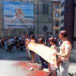 Stamattina alle 11:15, davanti al Battistero di Firenze, 5 persone hanno versato vernice rossa sui propri corpi per esprimere solidarietà a Ester e Guido, i due cittadini aderenti a Ultima Generazione che nell’estate 2022 si sono incollati al basamento della statua di Laocoonte presso i Musei Vaticani e il 12 giugno scorso sono stati condannati a 9 mesi di reclusione e al pagamento di una multa di 1.500 euro ciascuno (con sospensione di entrambe le sanzioni), cui si aggiunge il risarcimento di 28.000 € di danni.