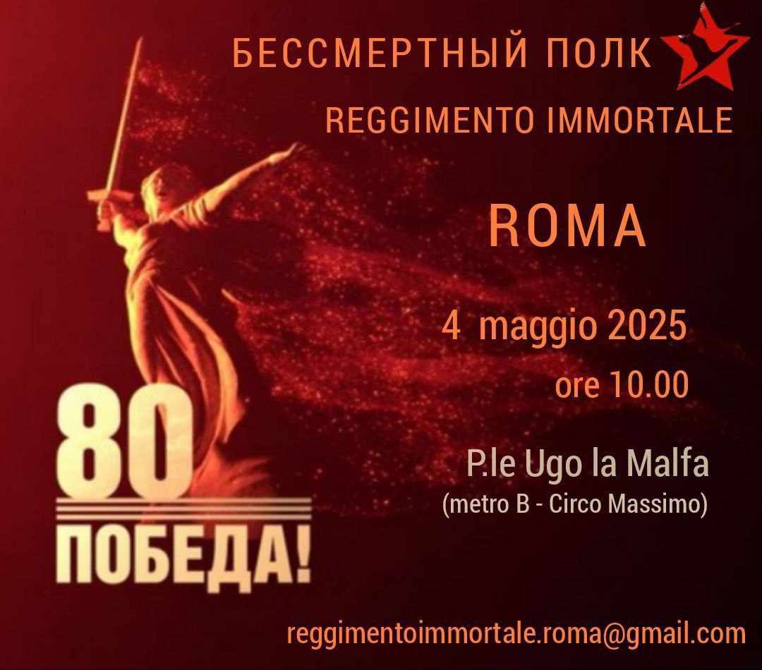 Domenica 4 Maggio, la comunità russa si ritrova a Roma alle 10 del mattino in piazzale Ugo La Malfa per ricordare il Reggimento Immortale.