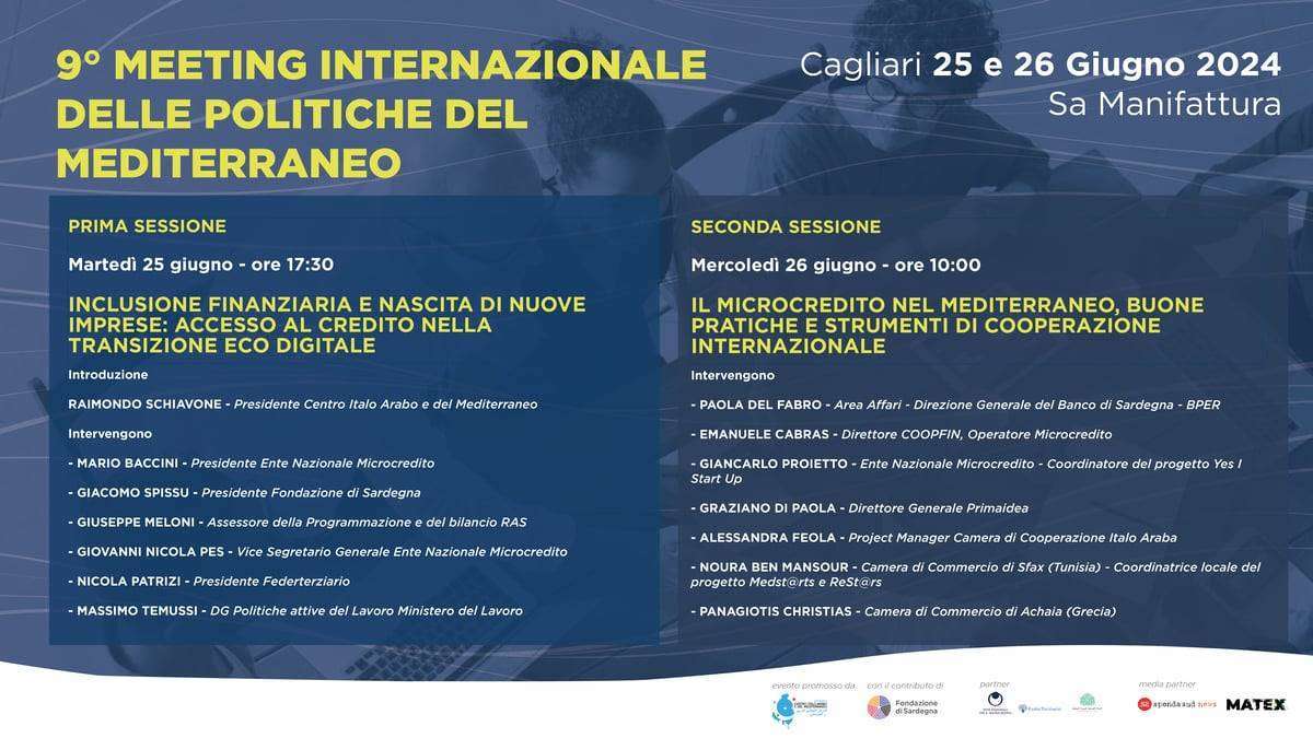 Il Centro Italo Arabo e del Mediterraneo è lieto di invitarti al 9° Meeting Internazionale delle Politiche del Mediterraneo che si svolgerà negli spazi della Manifattura Tabacchi a Cagliari il 25 e il 26 giugno.