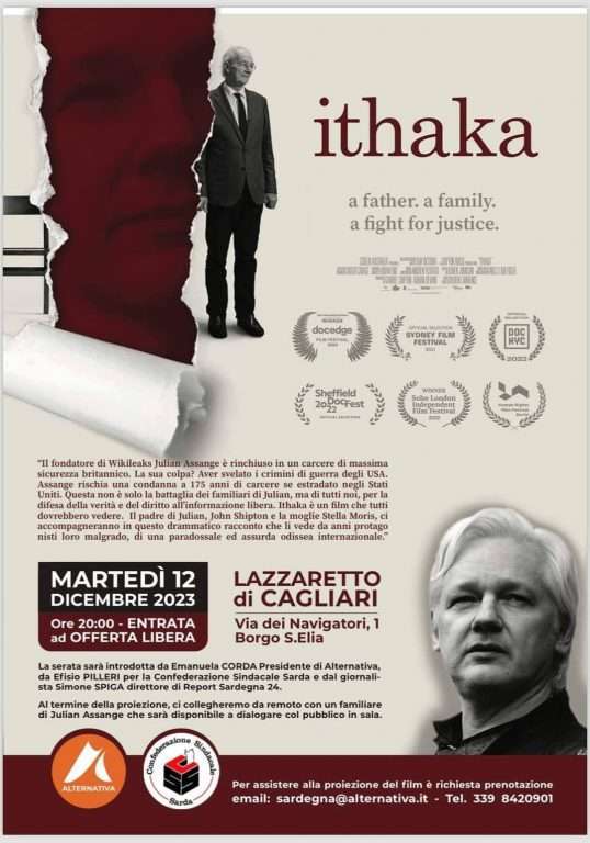 Martedì 12 dicembre al Lazzaretto di Cagliari (CA) alle ore 20:00, approderà Ithaka, il film sulla storia di Julian Assange, simbolo del giornalismo d’inchiesta, detenuto tutt’oggi nel Regno Unito, per aver svelato al mondo i crimini di guerra USA.