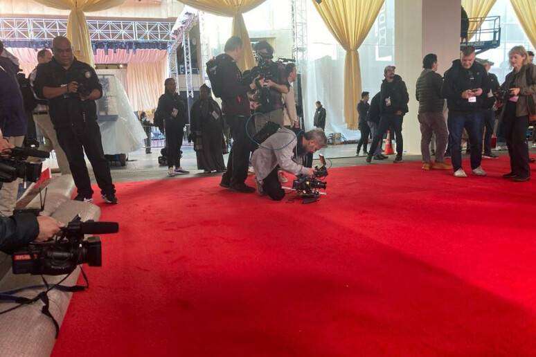 La cerimonia per la stampa accreditata durante cui si srotola la moquette si è tenuta a Los Angeles.