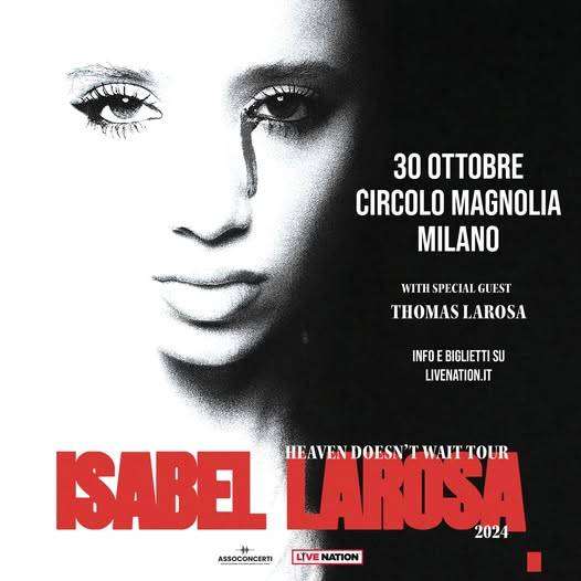 Isabel LaRosa, cantante alt-pop, arriva in Italia con un’unica data, sabato 22 novembre 2025 al Fabrique di Milano, che farà parte del suo “Psychopomp Tour”, tour da headliner in Europa e nel Regno Unito, prodotto da Live Nation. La notizia fa seguito alla recente pubblicazione del primo album della LaRosa, “Raven”, uscito il 18 aprile.