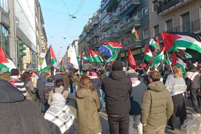 È partito da piazzale Loreto e al grido ‘Palestina libera’ il corteo pro Palestina a Milano.