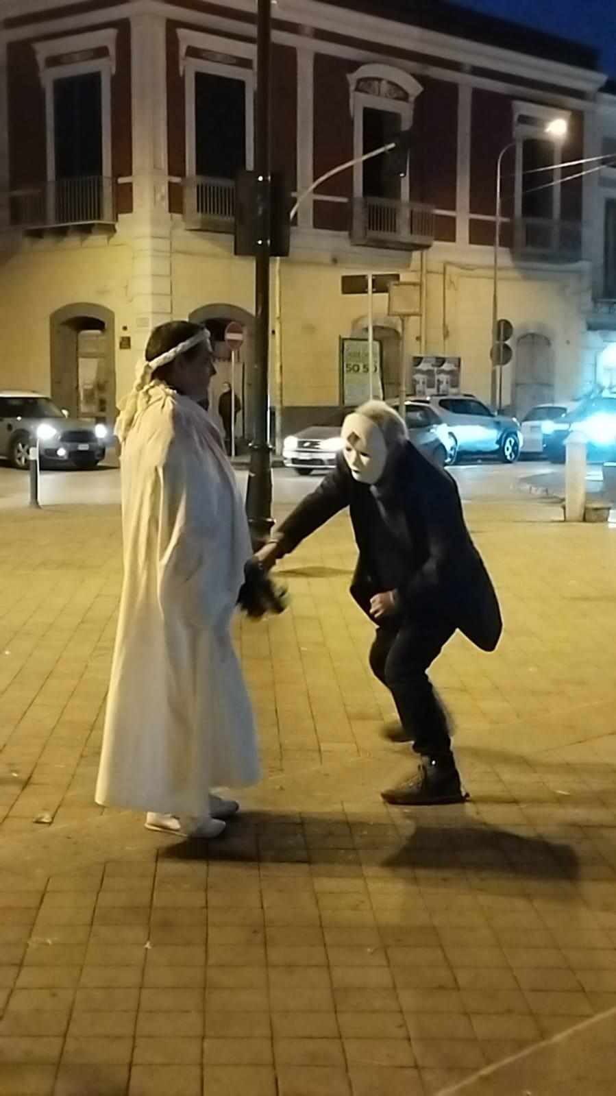 Quando m’affidano curatele così complesse, lavoro su cerimoniali che devono tradursi in riti e cerimoniali collettivi, non a caso qualche passante chiedeva se stessimo svolgendo una messa. Enzo Correnti ed Ina Ripari, sono nel linguaggio di genere della performance due giganti dallo spessore e dalla tenuta internazionale, lontani dai riflettori si sono esibiti in situazioni ad alta tensione dovunque in Italia e nel globo, per decenni hanno disegnato una traiettoria di genere lontano dal circuito specializzato di genere portando l’arte dovunque e comunque, più veri e legati di Marina Abramovic e Ulay e per questo realmente di nicchia, se non mastichi cosa sia l’arte nel quotidiano e a cosa serva la performance, non puoi comprenderli sul serio, nella performance d’Ina Ripari, dopo essersi sposati, colui che fustiga e costipa la moglie, muore per sfinimento dopo averla annientata in tutta la sua luce vitale.