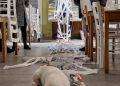 Nel fuori programma è stato possibile anche interagire con l’installazione di Marco Rallo (artista che si è occupato della comunicazione grafica) collocata in bagno nel nome del consentire allo spettatore una reazione intima e proibita in relazione a ciò che osserva sollevando e spiando tendine. Posso aggiungere una cosa? Di cose complesse è giusto che ne parlino solo gli artisti, sarà per questo che a Cagliari li abbandonano e del loro valore debba occuparsene un curatore Indy e un docente di periferia come me?