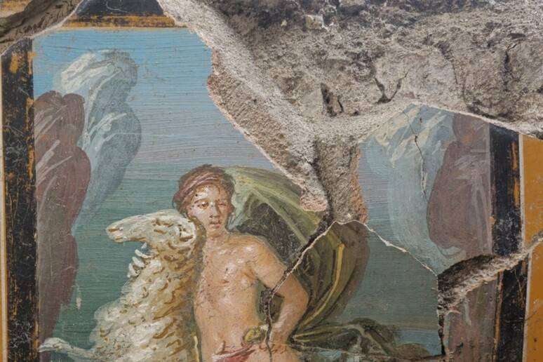 “Si è ripetuta la storia, siamo dinanzi a un bellissimo affresco, in ottimo stato di conservazione. Sì, c’è l’ipotesi che sia opera della stessa bottega o forse una committenza unica. Quello di Frisso e Elle – ricorda Zuchtriegel – è un mito diffuso a Pompei, ma anche attuale. Sono due profughi in mare, fratello e sorella costretti a scappare perché la matrigna li vuole cacciare di casa e lo fa con inganno e corruzione. Lei cade in acqua e annega, ha il volto coperto dalle onde, sta per annegare e tende la mano verso il fratello”. La casa di Leda (indagata dal 2018-19) non è ancora completamente vuota, gli scavi vanno avanti. Nella casa a sud è emerso l’affresco, in quella a nord è stato trovato nei mesi scorsi il gruppo di statuette ora in restauro. L’augurio è rendere fruibile presto anche queste aree, intanto è lo stesso direttore ad invitare alle visite ai cantieri, aperte ai visitatori. A Pompei, e qui il discorso si allarga, si è infatti “in una fase in cui bisogna navigare verso nuovi orizzonti: dagli aspetti prettamente archeologici e conservativi, a una visione urbana e socio-culturale”.