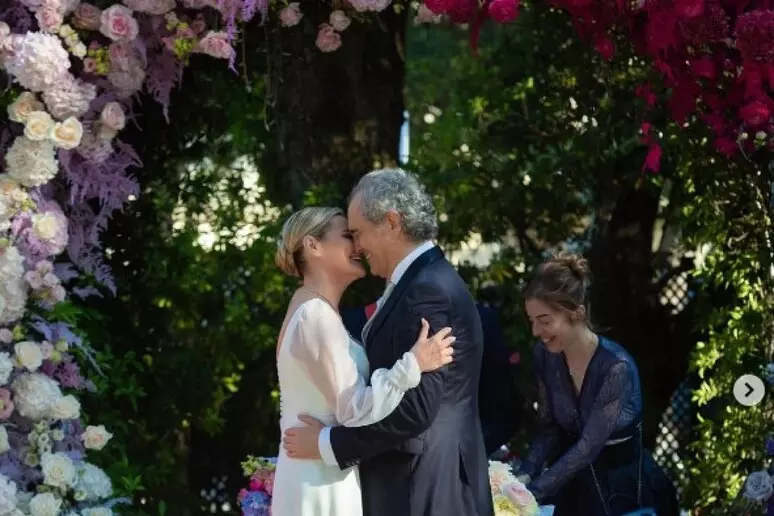 “Ti amo perché alla famosa cena che ci ha fatto incontrare le nostre anime si sono riconosciute. Ti amo perché dal momento che sei entrato nella mia vita, mi hai preso per mano e mi hai portato fuori dalle sabbie mobili in cui mi ero impantanata”, una delle promesse di Simona Ventura che si interrompe commossa “…neanche facessi questo lavoro”, scherza per smorzare le lacrime. “Una donna importante come te dà luce a un uomo e per questo ti dico sempre grazie”, un passaggio della promessa di lui. La conduttrice in tuta bianca con strascico e capelli raccolti con chignon basso. Il sì all’aperto sotto un arco di ortensie. Alcune immagini e video sono stati pubblicati in anteprima sui social da Chi che ha l’esclusiva del servizio sulle nozze. Il settimanale con l’esclusiva sarà in edicola mercoledì prossimo