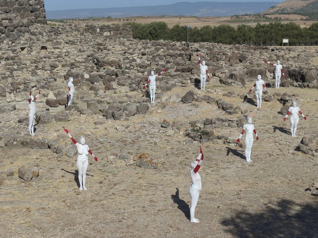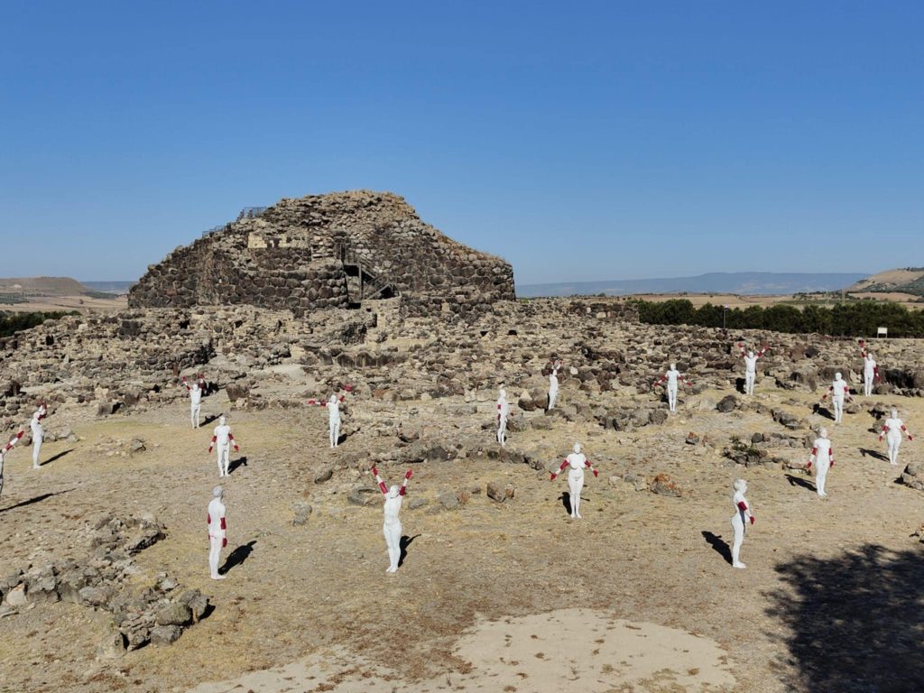 “In un luogo simbolo della civiltà nuragica, la presenza dei corpi nudi richiama l’urgenza di opporsi a nuove forme di colonizzazione paesaggistica, mascherate da progresso e sostenibilità”, sottolinea il curatore Pedro Rocha nel mettere in luce il quesito di fondo della performance: “Cosa si perde quando il progresso si misura esclusivamente in megawatt, quando il paesaggio è considerato alla stregua di un contenitore vuoto anziché un archivio vivente?”.