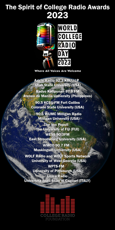 Unica Radio, la radio degli studenti universitari di Cagliari, ha ricevuto il riconoscimento “Spirit of College Radio” da parte della College Radio Foundation, organizzazione no-profit che si occupa di promuovere la radio universitaria nel mondo.