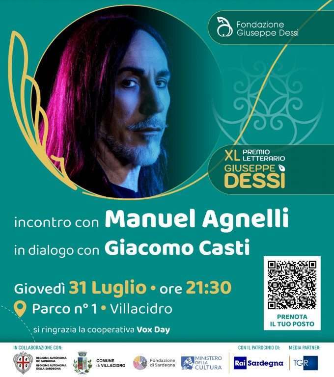 Dopo Manuel Agnelli, con le sue parole e le sue canzoni, il programma di presentazioni, concerti e spettacoli che accompagna il Premio Dessì proseguirà fino al 4 ottobre, data della cerimonia di premiazione del concorso letterario. Il successivo incontro sarà con Straniere in patria, dialogo tra Claudia Durastanti e Helena Janeczek, che si terrà lunedì 4 agosto a Casa Dessì, alle 17, uno scambio letterario organizzato in collaborazione con il Festival della Marina di Villasimius e in sinergia con il Comitato per i festeggiamenti di San Sisinnio, a Villacidro.