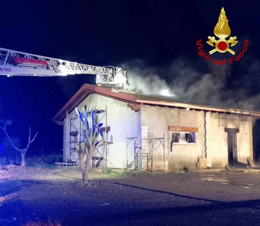 Intervento dei Vigili del fuoco nella notte in via Nuracada nell’agro di Sestu (CA), per un incendio che ha coinvolto un’abitazione privata in fase di costruzione.