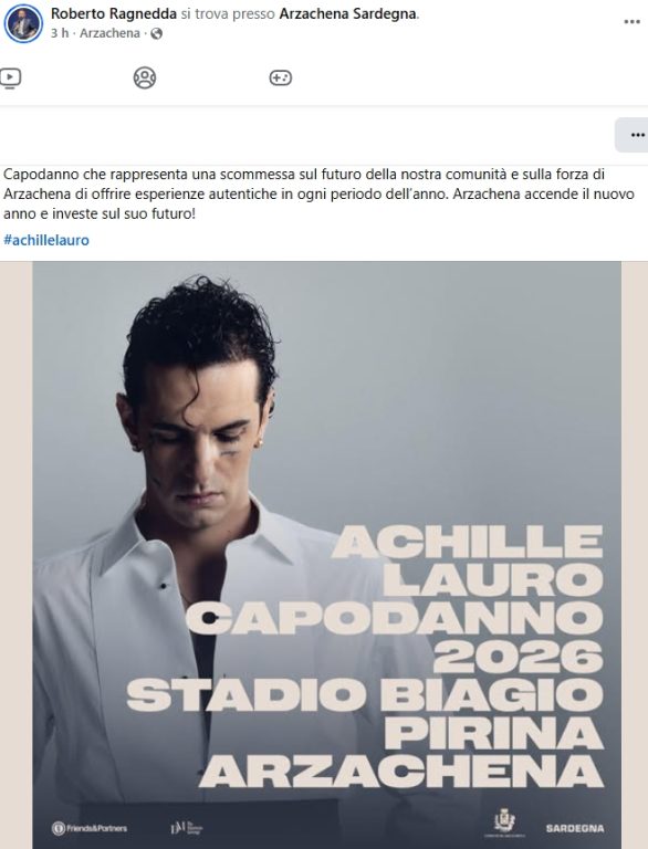 “Investire su eventi di grande richiamo come questo, significa credere nel futuro di Arzachena – sottolinea il sindaco Ragnedda -. La cultura e lo spettacolo sono strumenti fondamentali per valorizzare il territorio, creare occasioni di incontro e rafforzare il senso di comunità. Con il Capodanno e la presenza di un artista poliedrico come Achille Lauro, Arzachena torna al centro della scena regionale con un appuntamento che unisce qualità, energia e partecipazione.