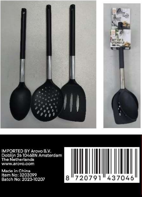 A scopo precauzionale, Action raccomanda di non utilizzare il set di utensili da cucina con il numero di lotto sopra indicato. Le consumatrici e i consumatori eventualmente in possesso del prodotto possono restituirlo in qualsiasi punto vendita della catena, dove sarà rimborsato, anche senza presentare lo scontrino.