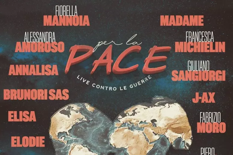 La musica italiana si schiera ‘Per la pace’, con un live ‘Contro le guerre’ in programma il 23 ottobre all’Unipol Forum di Milano, Assago, dove si esibiranno Fiorella Mannoia, Alessandra Amoroso, Annalisa, Brunori Sas, Elisa, Elodie, Emma, J-Ax, Madame, Ermal Meta, Francesca Michielin, Fabrizio Moro, Piero Pelù, Giuliano Sangiorgi e Rose Villain.