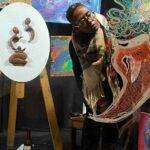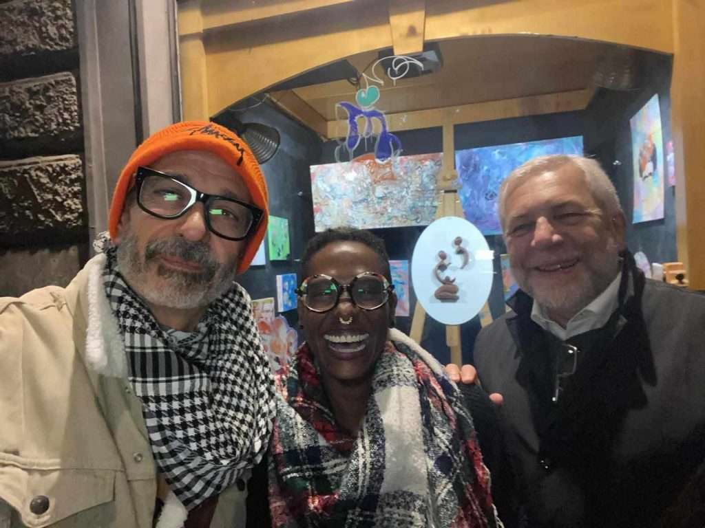 Aisha è stilosissima e coloratissima, ha anche le Campus Adidas rosse come le mie, anche se è andata in scena con Anfibi smaltati frutto del lavoro nel suo studio di Bacoli, è quel tocco di colore e allegria che rende tutto degno d’essere vissuto nella sintesi del suo lavoro, il Texas e Napoli non sono poi così lontani se ragioniamo d’Alta Formazione Artistica, Cagliari?