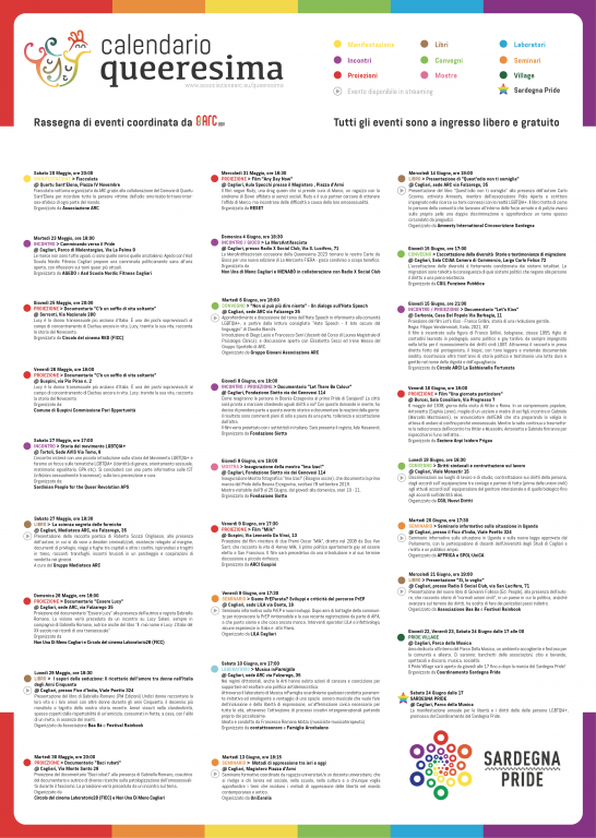Queeresima è un progetto politico e culturale ideato e curato dall’associazione culturale e di volontariato ARC ODV di Cagliari (apartitica, autofinanziata, politicamente autonoma) che si occupa del coordinamento generale del progetto, oltre a realizzare alcune proprie iniziative nel calendario. L’obiettivo è la promozione della cultura e la difesa dei diritti e delle libertà delle persone lgbtqia+ e di tutte le altre minoranze discriminate per l’orientamento sessuale e/o romantico, o identità di genere.
