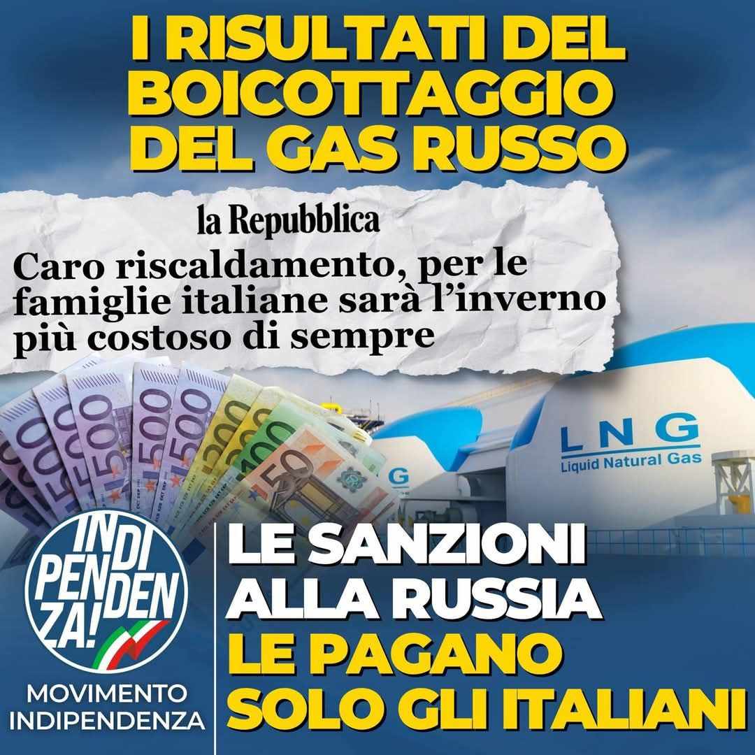 come mai? è molto semplice: le sanzioni contro la Russia, che il nostro governo ha adottato per obbedire alle direttive americane e dell’unione europea, hanno prodotto un rincaro del prezzo del gas che si riflette immediatamente sul bilancio delle famiglie”, afferma Gianni Alemanno, Segretario Nazionale di Indipendenza.