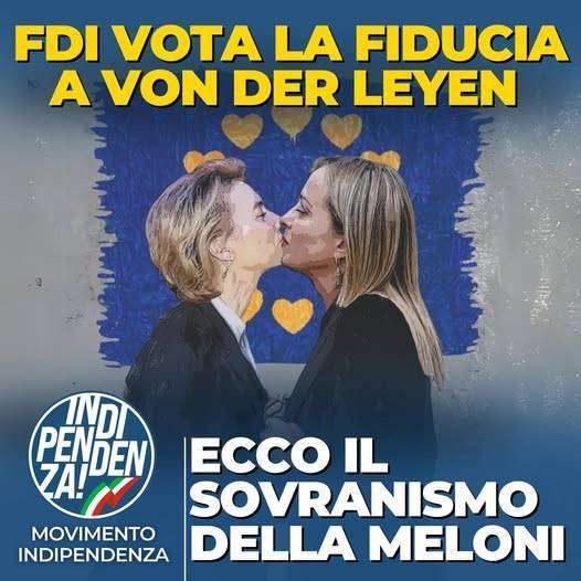 “Oggi la delegazione di Fratelli d’Italia ha votato a favore di Ursula von der Leyen in una votazione all’ultimo voto. Ursula von der Leyen è la peggiore Presidente della Commissione Europea di sempre, non a caso è quella che ha avuto la fiducia più bassa dal Parlamento Europeo”, scrive in una nota Gianni Alemanno, Segretario Nazionale di Indipendenza.