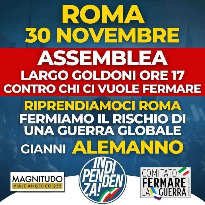 “Nonostante le sospette revoche delle concessioni di sale che abbiamo subito, domani si terrà ugualmente la nostra manifestazione per fermare i massacri in Palestina e per costruire l’alternativa al sindaco Gualtieri. Abbiamo scelto di organizzarla in una piazza nel cuore di Roma: domani alle ore 17 a Largo Goldoni parlerò insieme agli altri dirigenti del movimento e alle delegazioni della comunità libanese e palestinese.