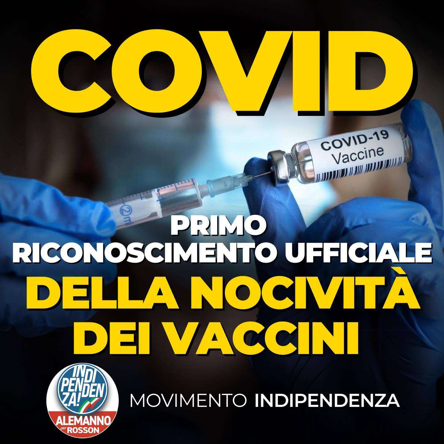 “Non è più una teoria di Novax, ma un’evidenza scientifica che dimostra la necessità di un’indagine accurata su quanto avvenuto durante la pandemia. Dimostra oggi più che mai la necessità di una commissione di inchiesta, che libera dagli interessi di Big Pharma, dica quanto realmente avvenuto, ed i rischi di interventi terapeutici fatti in emergenza, ma anche determinati da interessi economici inconfessabili. Ora più che mai è necessario che il popolo conosca la verità”, afferma Gianni Alemanno, Segretario di Indipendenza in un post sui social.