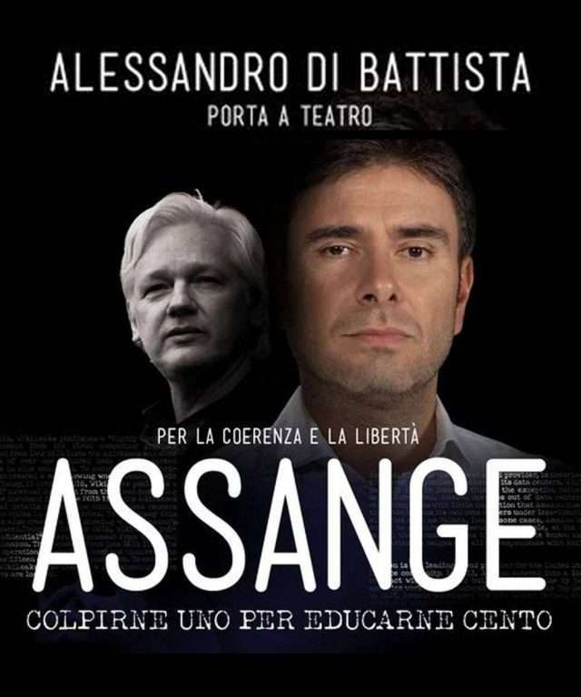 Colpirne uno per educarne cento. Alessandro Di Battista ripercorre a teatro le incredibili vicende del giornalista Julian Assange, fondatore del sito WikiLeaks e incarcerato per aver fatto il suo lavoro: dare notizie.