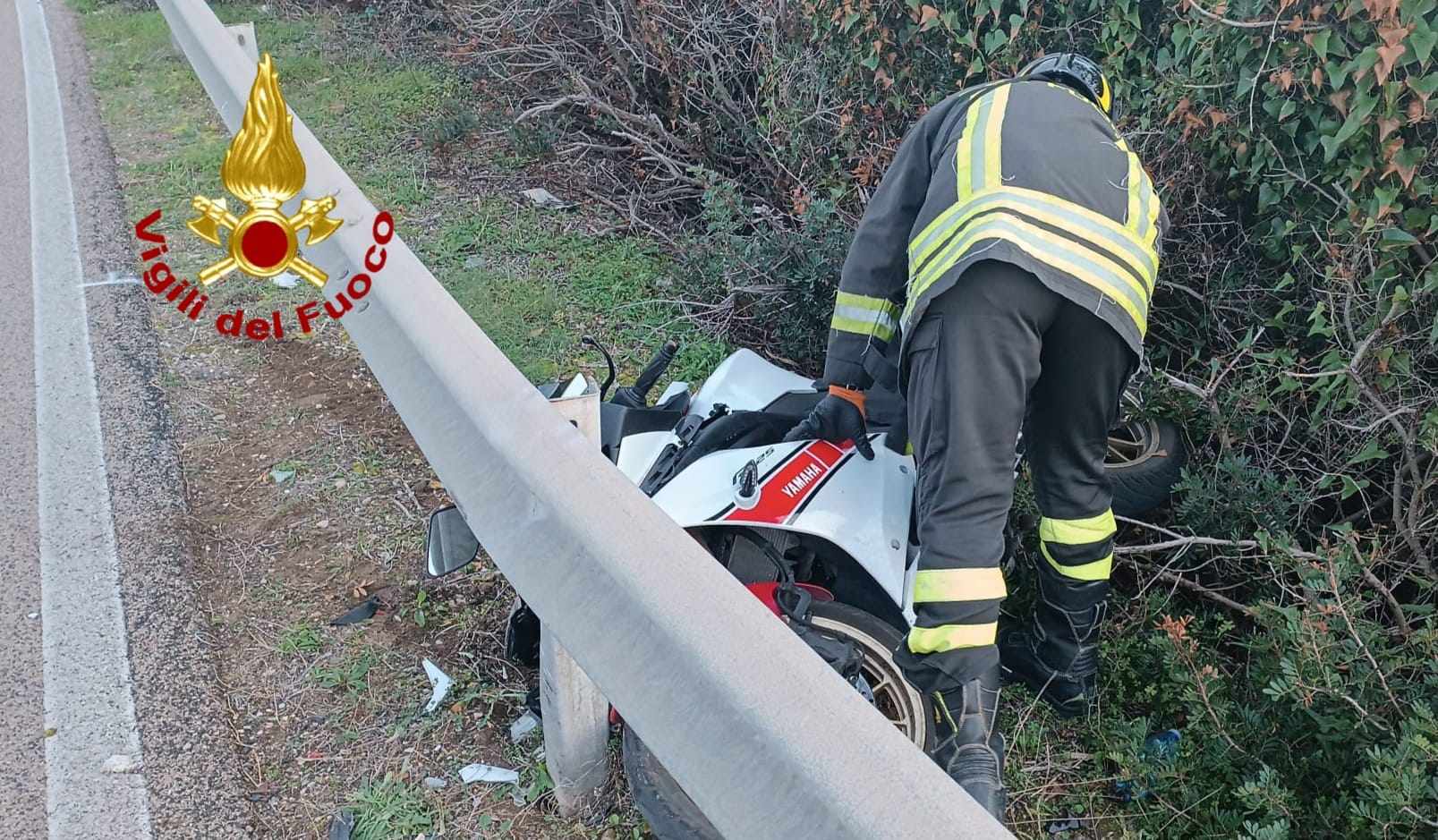 Per cause da accertare una motocicletta con due ragazzi a bordo è uscita di strada, finendo oltre il guardrail.