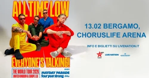 Gli All Time Low arrivano in Italia venerdì 13 febbraio 2026 alla Choruslife Arena di Bergamo. Un’occasione imperdibile per assistere all’unica data italiana della band pop punk statunitense.