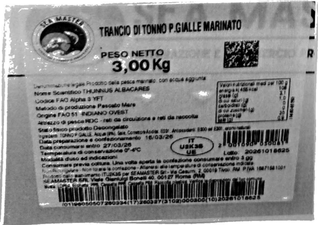 L’azienda Mar Grande Srl ha prodotto il tonno marinato per Sea Master Srl. Lo stabilimento di produzione si trova in via Carapelle 3, a Pulsano, in provincia di Taranto (marchio di identificazione UE ITU2K3S).