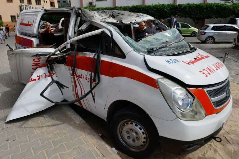 Un corrispondente dell’agenzia di stampa palestinese ha riferito che un aereo israeliano ha sparato un missile direttamente contro l’ambulanza che stazionava davanti all’ospedale, causando diverse vittime.