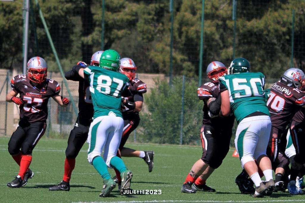 Per la trentatreesima volta consecutiva l’euforia è irrefrenabile. I giocatori vanno e vengono ma quello dei Crusaders rimane un nome inossidabile, nove lettere racchiudenti un mondo, quello del football americano in salsa sarda, che lotta ancora adesso, strenuamente, per agglomerare persone, convogliarle verso un interesse comune portatore di tanti aspetti collaterali diretti oltre l’agonismo tout-court. E quest’anno il gruppone degli allenamenti si è ingrossato: a Monte Claro mediamente si riversano trenta unità ma il roster annovera oltre quaranta nomi. Una situazione straordinaria che ha costretto la dirigenza ad ordinare nuove maglie per le gare ufficiali del campionato Nine Football League. La più vicina e tra l’altro di fronte al proprio pubblico, è domenica 17 marzo 2024. Arriva un’avversaria temutissima che l’anno scorso ha fatto vedere i sorci verdi al sodalizio cagliaritano, sia all’andata, sia al ritorno: i Rams Milano. Il calendario del girone C comprende un’altra reduce dall’esperienza 2023, i Gorillas Varese; ma c’è anche la franchigia inedita rappresentata dai piemontesi del Blitz Cirié.