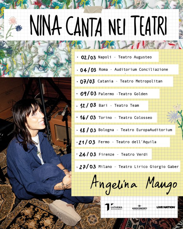 Angelina Mango sceglie i teatri per il suo nuovo viaggio musicale. Dopo la pubblicazione a sorpresa di caramè lo scorso 16 ottobre, la cantautrice annuncia “Nina canta nei teatri”, un tour che partirà il 2 marzo da Napoli e toccherà dieci città italiane. Un ritorno che segna la fine di un lungo stop per motivi di salute e l’inizio di una fase più intima e condivisa.