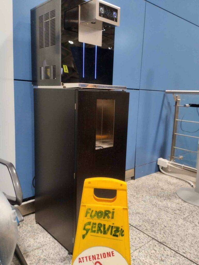 Oggi, a distanza di meno di un mese dall’annuncio la situazione è ben diversa. Infatti risulta guasto l’erogatore al piano terra della struttura.
