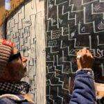 Invitando ogni partecipante (compresi vecchi matusa di mezzo secolo e più d’età, come me, Massimo Campagna, Alfonso Caccavale e Claudia Del Giudice) a disegnare i tratti all’interno del mosaico di spazi e percorsi mappati da lui, conferendo alla dinamica del fare arte una rappresentazione condivisa e interattiva.