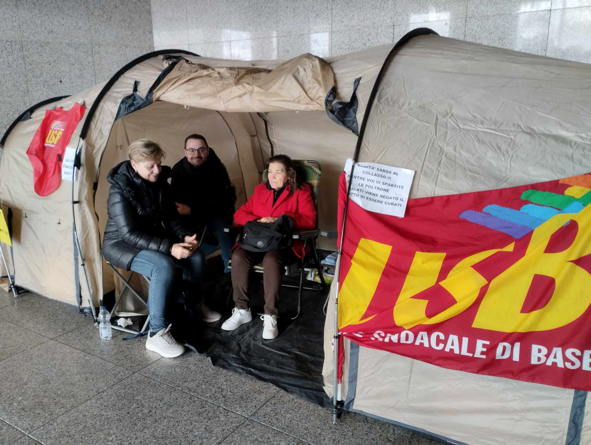 “Il presidio sarà permanente, almeno fino a quando i lavoratori non otterranno risposte – ha detto Gianfranco Angioni, referente regionale di USB Sanità -. Ci accampiamo e dormiamo qui finché non capiranno che non si può vivere senza lavorare”.