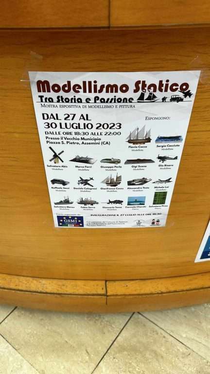 Si svolge fino a domenica 30 luglio presso il Vecchio Municipio di Assemini in Piazza S. Pietro la mostra espositiva di modellismo e pittura promossa da Gsmi, il Gruppo di studio modellistico della Sardegna.