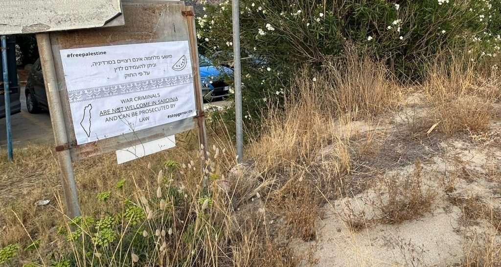“Apprendiamo che negli scorsi giorni sarebbe stata aperta un’ indagine per i reati di propaganda e istigazione a delinquere (art.604 bis c.p.) e violazione della normativa paesaggistica e ambientale (articolo 181 d.lgs 42/2024) per l’affissione sopra un cartello all’ ingresso di una spiaggia di un manifesto con la scritta “I criminali di guerra non sono i benvenuti in Sardegna, e sono perseguibili dalla legge”.