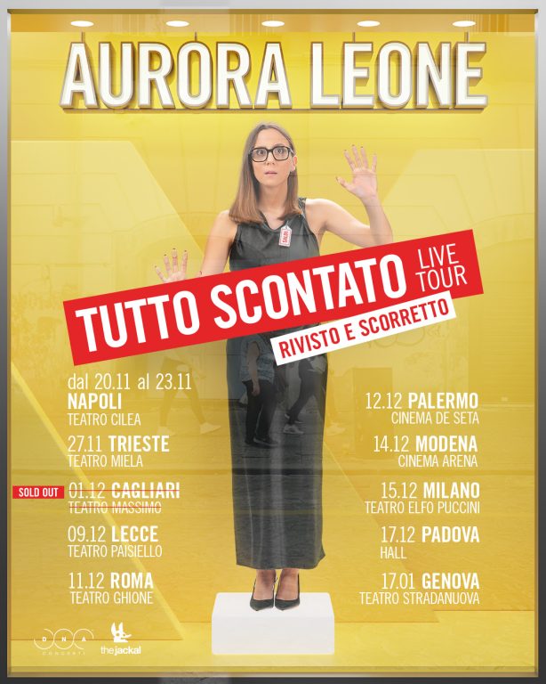 Aurora Leone riparte con il secondo giro del suo Tutto scontato – Rivisto e scorretto, con la sua ironia tagliente e il suo sguardo irriverente sulla realtà contemporanea.