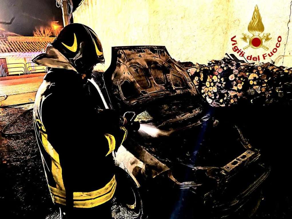 Le fiamme per cause ancora da accertare hanno interessato un autovettura danneggiando uno scooter una seconda auto e l’ingresso di una abitazione, la squadra di Vigili del fuoco ha spento le fiamme e messo in sicurezza l’area interessata.