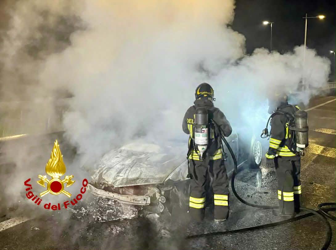 L’allarme è scattato a seguito di numerose segnalazioni giunte alla sala operativa. Al loro arrivo, i Vigili del Fuoco hanno trovato il veicolo completamente avvolto dalle fiamme, nella parte anteriore del motore.