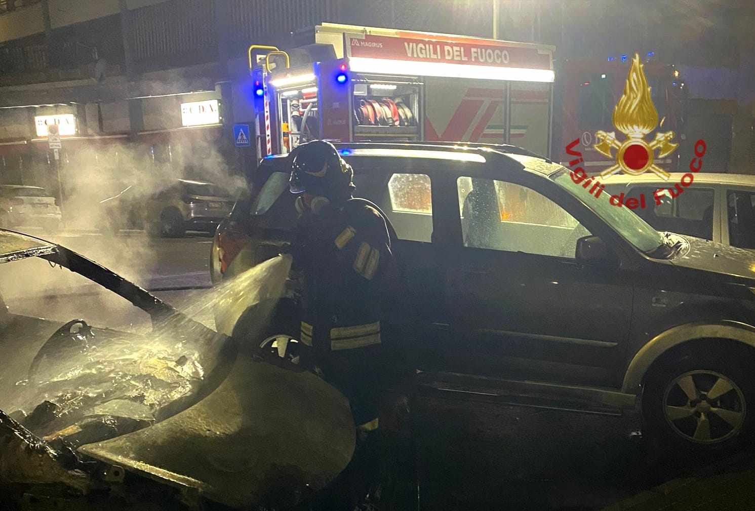 Il primo intervento dei Vigili del fuoco di Cagliari poco prima delle 2: una squadra del Comando è intervenuta per un veicolo a bordo strada sulla 554.