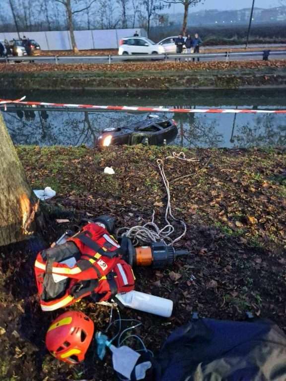 E’finita con la sua auto nel Naviglio Pavese, alla periferia di Pavia vicino allo stadio, dopo uno scontro con un’altra vettura.
