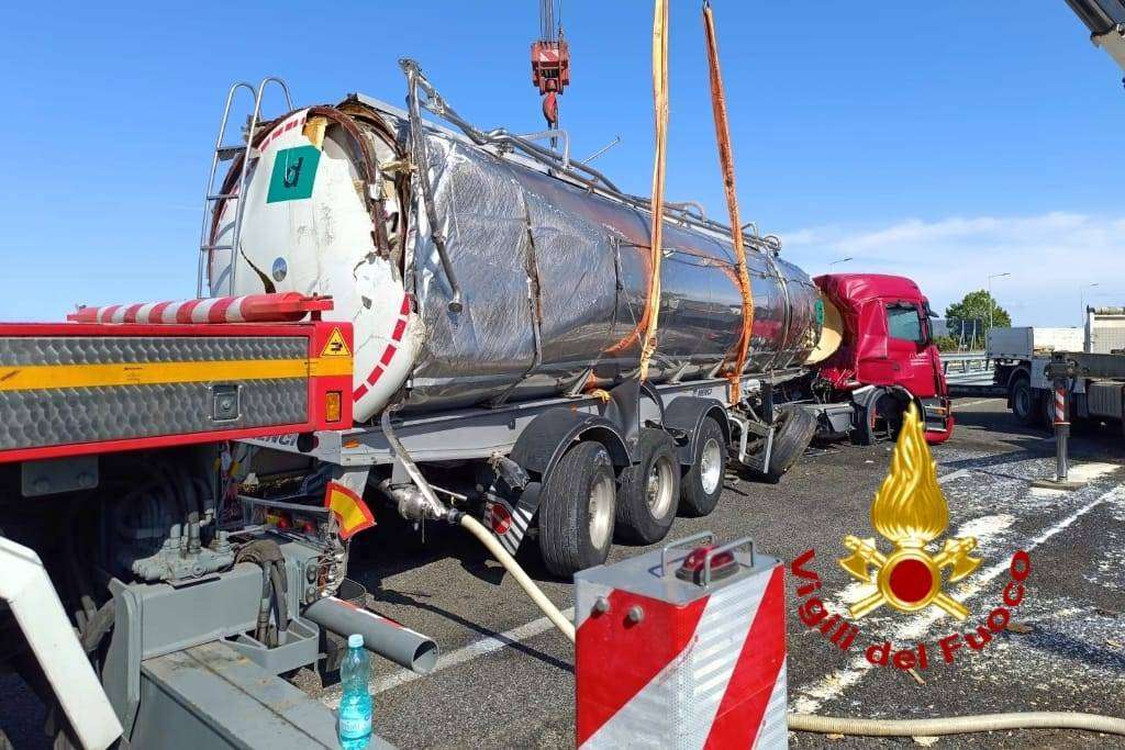 In tarda mattinata un’ autocisterna con 25000 litri di latte si è ribaltata sulla 131, in direzione Cagliari nei pressi del bivio di Codrongianos.
