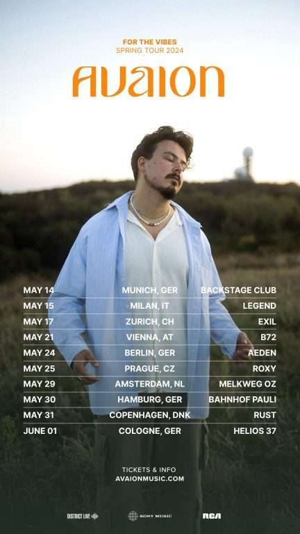 Avaion annuncia ‘For The Vibes Spring Tour 2024’, nuovo tour europeo che lo vedrà anche in Italia per un unico appuntamento: l’artista si esibirà al Legend Club di Milano il prossimo 15 maggio.