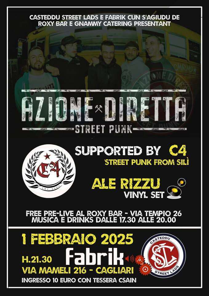 Il primo febbraio torna il grande punk a Cagliari, infatti si esibiranno al Fabrik in via Mameli gli Azione Diretta, band street punk/Oi! formatasi a Perugia nel 2007.